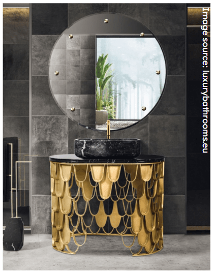 Copper and brass can change the bathroom mood from functional to indulgent. These warmer metallics add shimmer to your space.