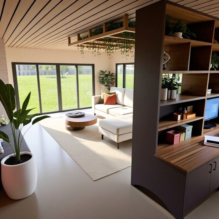Natural materials such as wooden surfaces have been linked to reduced noise pollution, improved acoustic comfort, and better thermal regulation. Timber floors leading to a sunken lounge (with large timber beams) and timber ceilings holding an overhead garden have been included in the different design options.